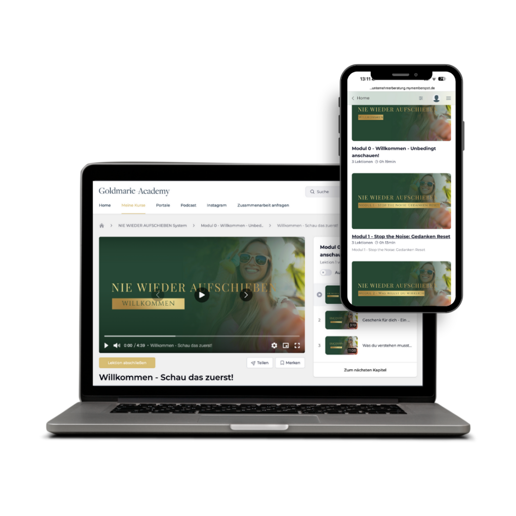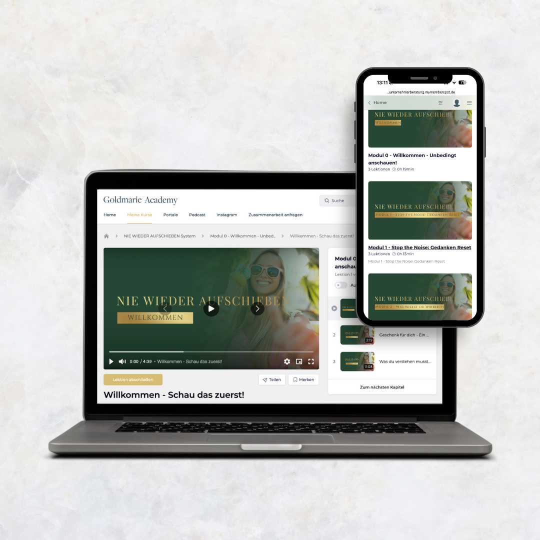 - Sofortiger Exklusiven Zugang zur Goldmarie Academy nach Kauf. Du kannst sofort mit deinem Kurs starten. Inkl. App