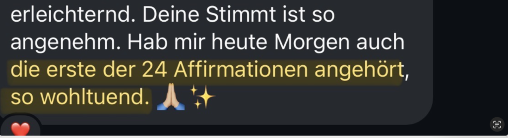 - Täglich nutzbar: 24 Affirmations-Audios, die du wirklich nutzt – morgens, von unterwegs, abends.